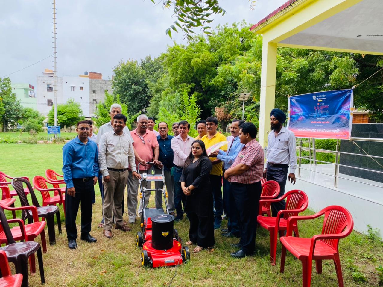 बैंक ऑफ बड़ौदा के 115 स्थापना दिवस के अवसर पर बैंक ने पार्क समिति को दी घास काटने की मशीन।