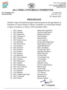 रुद्रपुर: कांग्रेस संगठन में बेहड़ गुट को नहीं मिली तरजीह, जगदीश तनेजा हटाए गए, सीपी शर्मा नगर अध्यक्ष और हिमांशु बने जिलाध्यक्ष