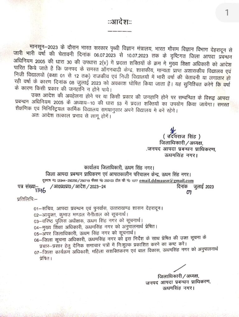 रुद्रपुर। जिले में भारी बारिश की चेतावनी के मद्देनजर ऊधम सिंह नगर के जिलाधिकारी उदय राज ने आठ जुलाई को...