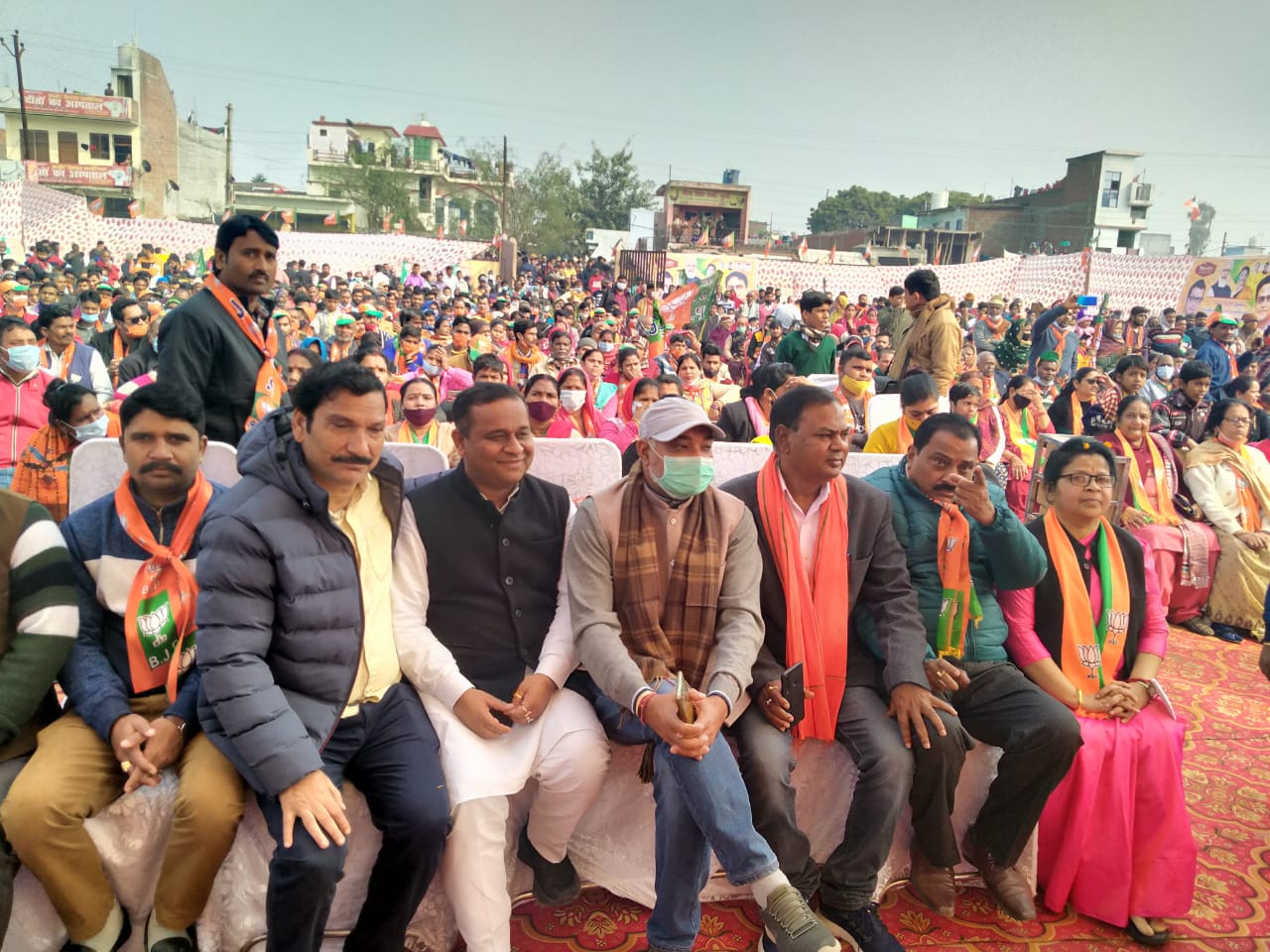 इससे रैली को मुख्यमंत्री पुष्कर सिंह धामी ने संबोधित किया। उन्होंने कहा कि उमड़ा जनसमूह इस बात की तस्दीक कर रहा है कि एक बार फिर उत्तराखंड में भाजपा की सरकार बनने रही है। कोरोना महामारी के दौरान प्रधानमंत्री मोदी ने देश की जनता की जान बचाने का काम किया। एक साल के अंदर पीएम मोदी के प्रयासों से दो दो वैक्सीन बनी। मुफ्त में लोगों को वैक्सीन लगाई जा रही है। वहीं एक वर्ग ने वैक्सीन को लेकर लोगों में भ्रम पहुंचाया। कहा कि वैक्सीन लगाने से आप बीमार हो जांएगे, आपकी जान चली जाएगी। ऐसे लोग जनता के अपराधी हैं। मतदान के दिन जनता ऐेसे लोगों को सबक सिखाएगी। उन्होंने कहा कि पीएम मोदी ने महामारी के दौरान गरीब लोगों के लिए राशन सुनिश्चित किया।आज पूरे देश में आयुष्मान योजना का लाभ मिल रहा है। अब लोगों को गंभीर बीमारी होने पर अपने घर और जेवर गिरवी नहीं रखने पड़ रहे हैं। अब ऐसे लोगों का इलाज आयुष्मान योजना के तहत मुफ्त हो रहा है। उज्जवला योजना के तहत महिलाओं को मोदी सरकार ने मुफ्त गैस सिलेंडर दिया। पीएम आवास के तहत लोगों को आवास दिया, शौचालय दिया गया। किसानों को खाते में किसान सम्मान निधि भेजी गई। बाबा केदारनाथ धाम में 400 करोड़ से पुरद्धार किया जा रहा है। आयोध्या में रामलला को टेेंट में देखकर कष्ट होता था। वह इंतजार कर रहे थे कि कब ऐसा पधानमंत्री आएगा जब ज हमे टेंट से निकालकर भव्य मंदिर में पहुंचाएगा। आज यह सपना भी साकार हो रहा है।