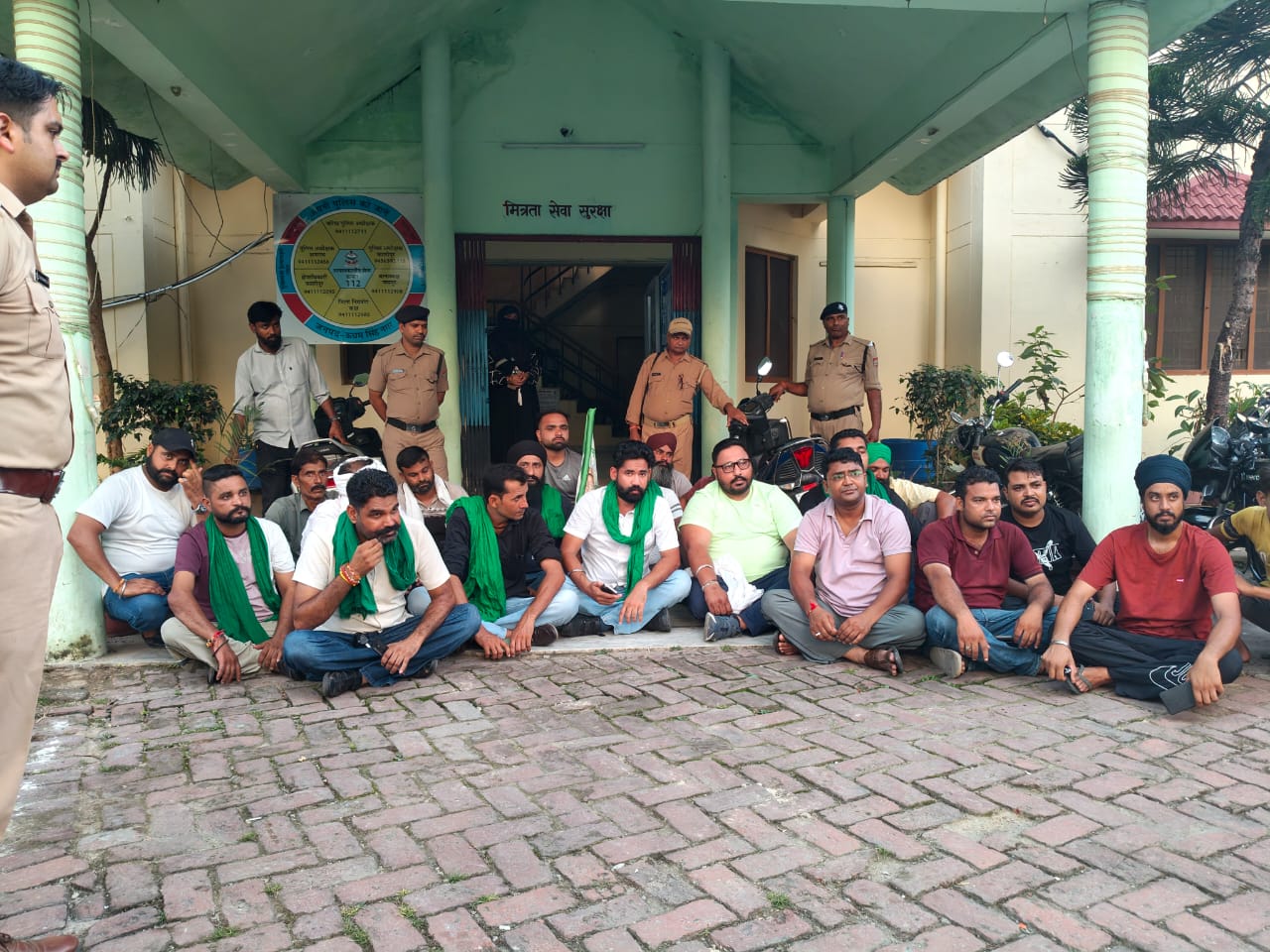 लाठी चार्ज के विरोध में जसपुर कोतवाली में किसानों ने किया प्रदर्शन
