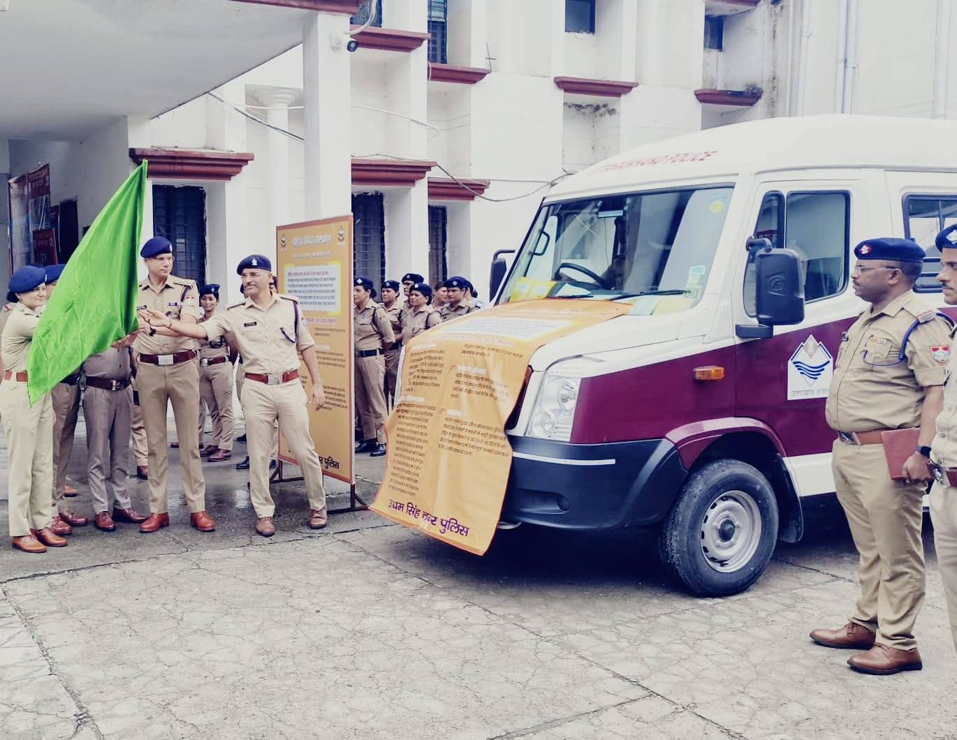 रुद्रपुर। जिले में आमजन को नए कानूनों के प्रति जागरूक करने के लिए उधम सिंह नगर पुलिस ने एक खास मुहिम की शुरुआत की है। सोमवार को पुलिस कार्यालय परिसर से एसएसपी मणिकांत मिश्रा ने विधिवत रूप से ई-वैन को हरी झंडी दिखाकर रवाना किया।